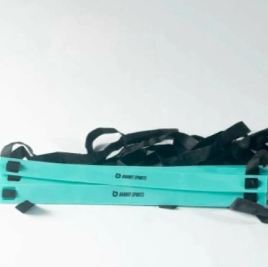 This 10 prong adjustable speed ladder is a staple for all quickness and agility drills. Bandit Sports carrying case, flexible plastic, and adjustable rungs.