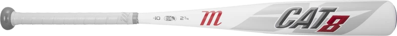 The CAT8 -10 is a USSSA certified, one-piece alloy bat built with AZ105 super strength aluminum alloy meaning thinner walls, higher response rate, and better durability. The precision-balanced barrel features a ring-free multi-variable wall design that creates an expanded sweet spot, while the patented AV2 Anti-Vibration knob produces a better feel and less negative feedback.