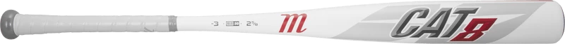 This 2018 Marucci CAT8 BBCOR baseball bat features a -3 length to weight ratio and a 2 5/8 inch ring-free barrel construction, important for increased barrel flex and reducing the likelihood of dead spots, so every ball you hit can travel high and far. The barrel is also precision-balanced for a lower M.O.I, resulting in a lighter feel as you swing and giving you better precision and control. Its one-piece alloy construction provides a clean, consistent swing, and the tapered handle with its soft-touch grip is topped with an ergonomic knob shape for more top-hand control and comfort while you’re at the plate. This bat is BBCOR certified for high school and collegiate baseball play.
