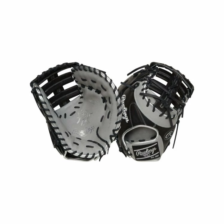 The freshest gloves in the game are here: It’s the Rawlings ColorSync 7.0 Heart of the Hide series! This 13-inch first base mitt comes in a cool and confident black-and-gray colorway that stands apart from the crowd. Crafted using premium, world-renowned Heart of the Hide leather, this glove features just the right balance of structure and softness needed to pick anything thrown your way at first base. Also, the single-post double bar web gives you a lightweight feel that secures even the toughest digs. The ColorSync series is known for perfectly blending style and function on the field, and this glove is a perfect example of why.