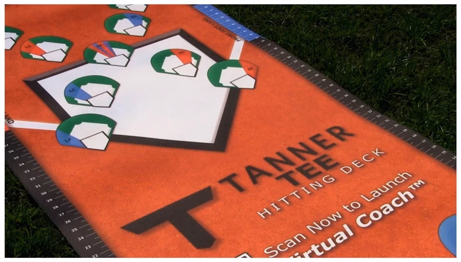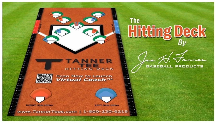 New for 2014! From the makers of the top-rated Tanner Tee comes the Hitting Deck, a revolutionary tee training aid. This trainer instills fundamental hitting concepts with visual aids, forces consistency, and shows a hitter how to conduct the most efficient tee training possible. This hitting aid shows where to hit the ball, based on tee location. Drive